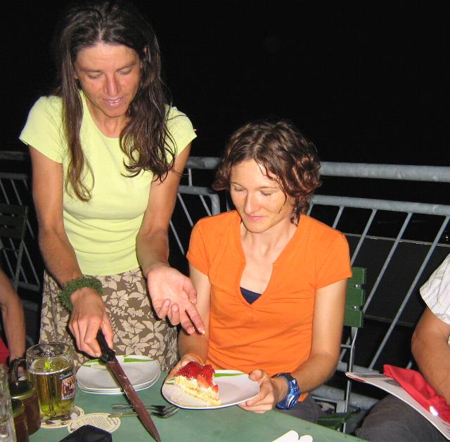 Die Erdbeertorte als Ehrenpreis wird ehrlich geteilt