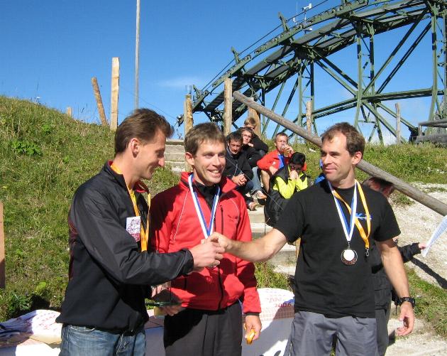 Hansi schnapslt mit dem Tagessieger Alfred Mandl (links)