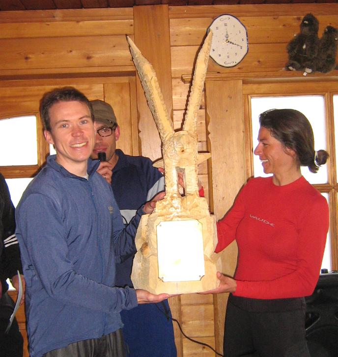 Die Gravour im Greifvogel ist sicher: Hochgernsieger Florian Ettner und Waltraud