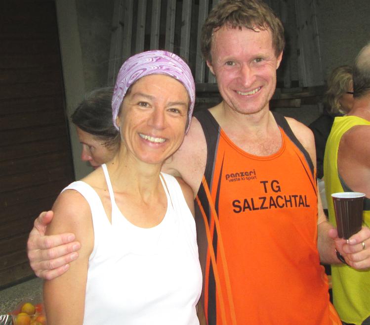 Freude pur: Siegerin Waltraud mit Berglauf-Chef Armin